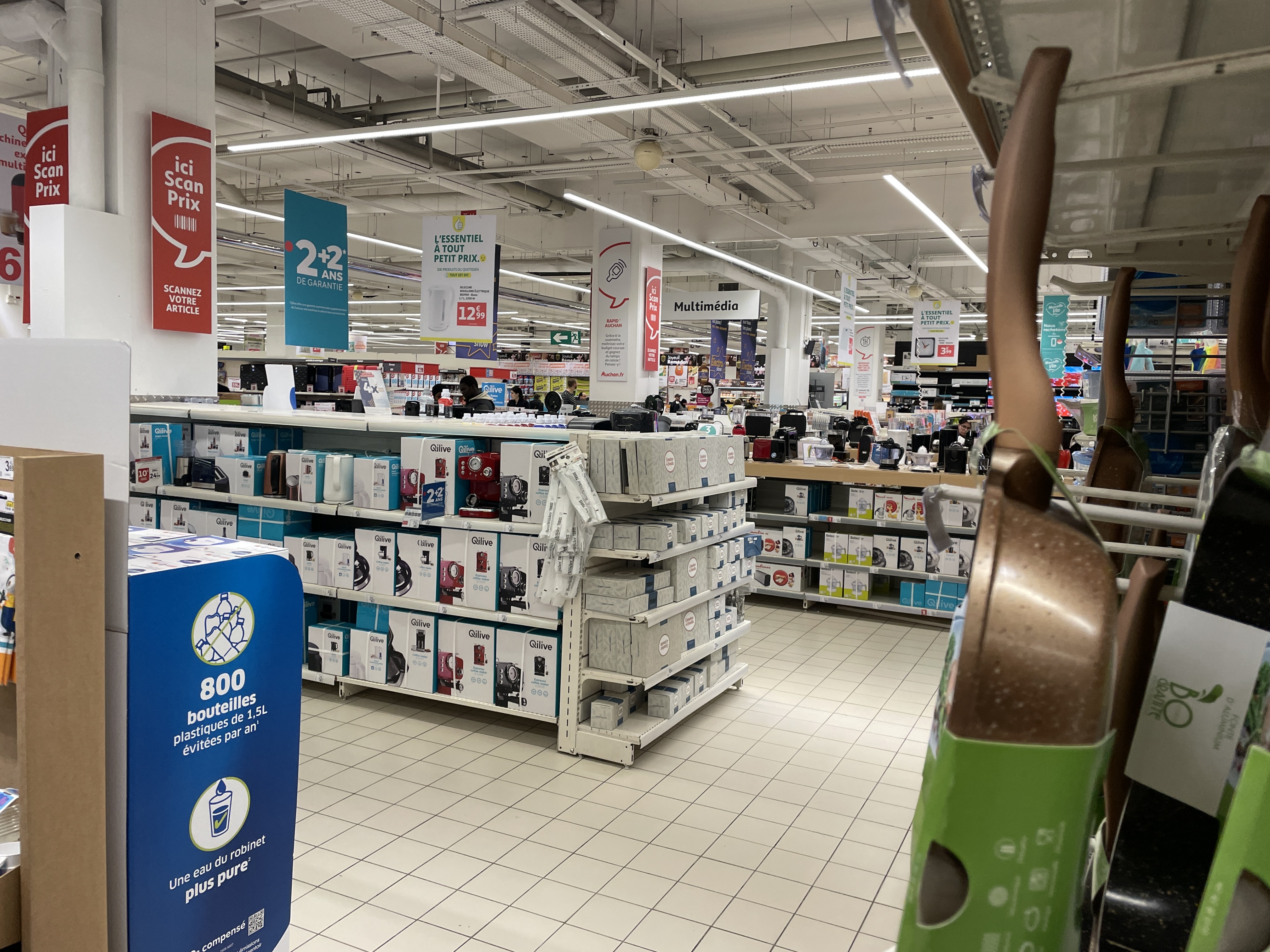 Le magasin sur deux étages et grands, bien placé, bien entretenu, en revanche l’accueil est à l’étage et les services sont mal indiqués. Attention les scanettes automatique scan lib sont défectueuses