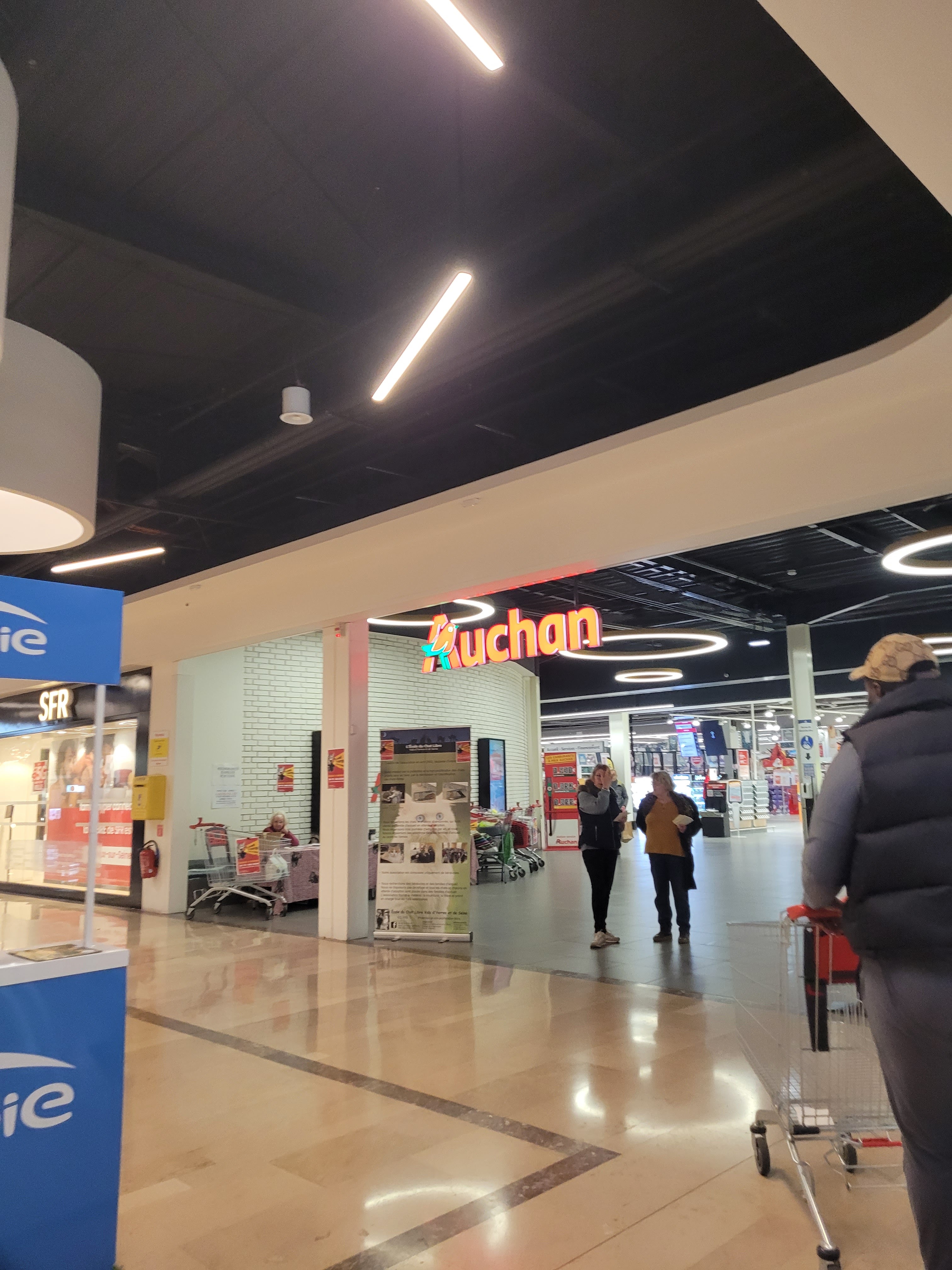 Personnellement je préfère aller chez Auchan hypermarché pour faire une partie de mes courses. Concernant celui-ci, je trouve que c'est le 2eme meilleur Auchan d'Ile de France. Il y a peu de monde en général, et l'hypermarché est vraiment grand, donc c'est agréable de marcher dans les allées avec son caddie👏🏾 Il y a régulièrement des promotions et le frigo date courte est vraiment plein. Le service Accueil SAV est compréhensif et à l'écoute concernant les erreurs de ticket de caisse😊 Point négatif : Je trouve que le parking est à refaire. La route est déformé/troué et ça manque de signalisation (au sol et panneaux).