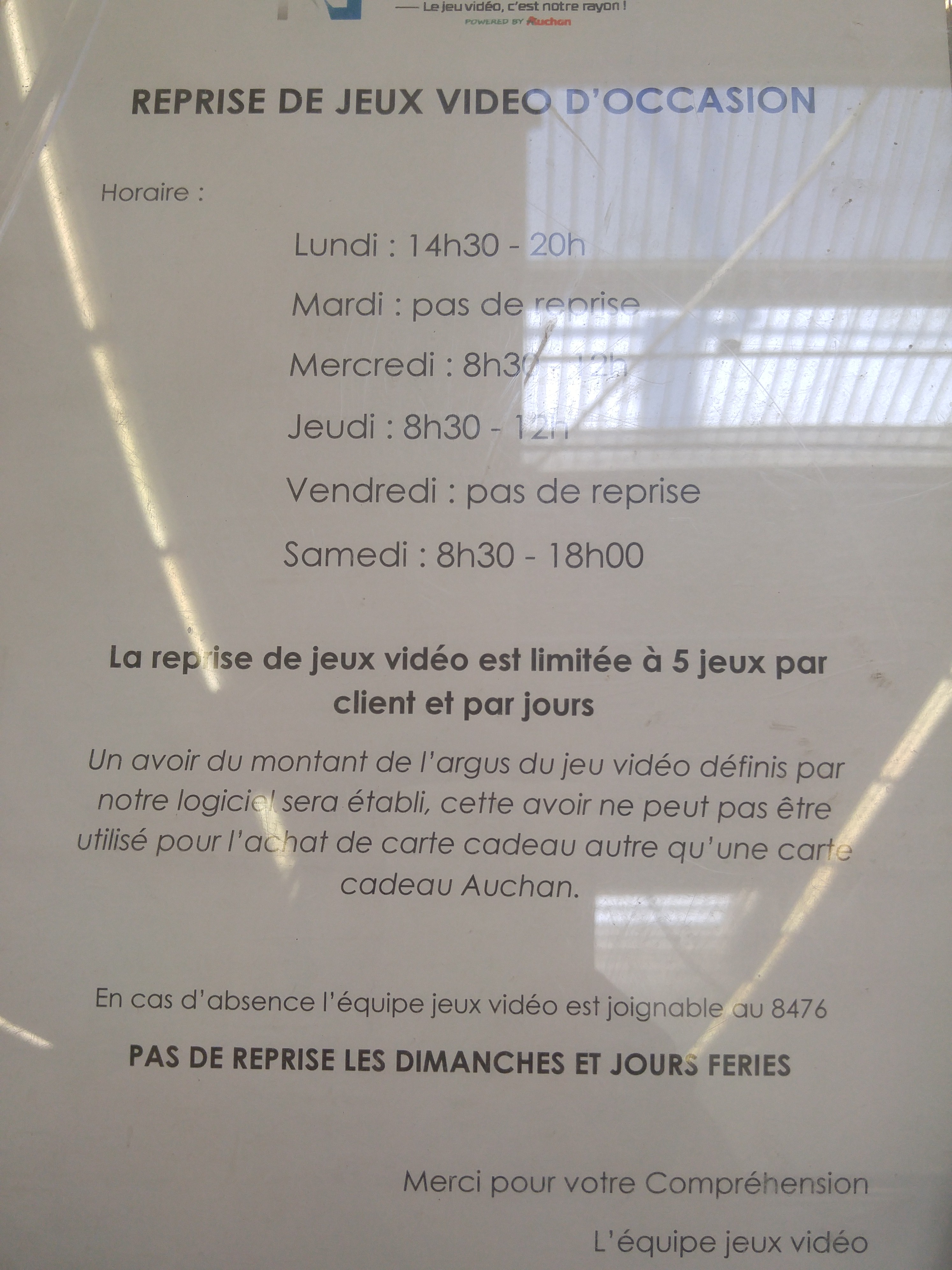 Auchan fait une promotion dans son magasin pour une xbox série x pour le mois de janvier mais a y aller plusieurs fois pas de produit dans le rayon jeux pas de vendeur , on demande à l'accueil il passe un coup de fil mais impossible d'avoir une réponse ci le produit est en magasin ou autre. C'est ridicule dans se magasin. J'y reviendrai plus . Préféré carrefour c'est plus sérieux