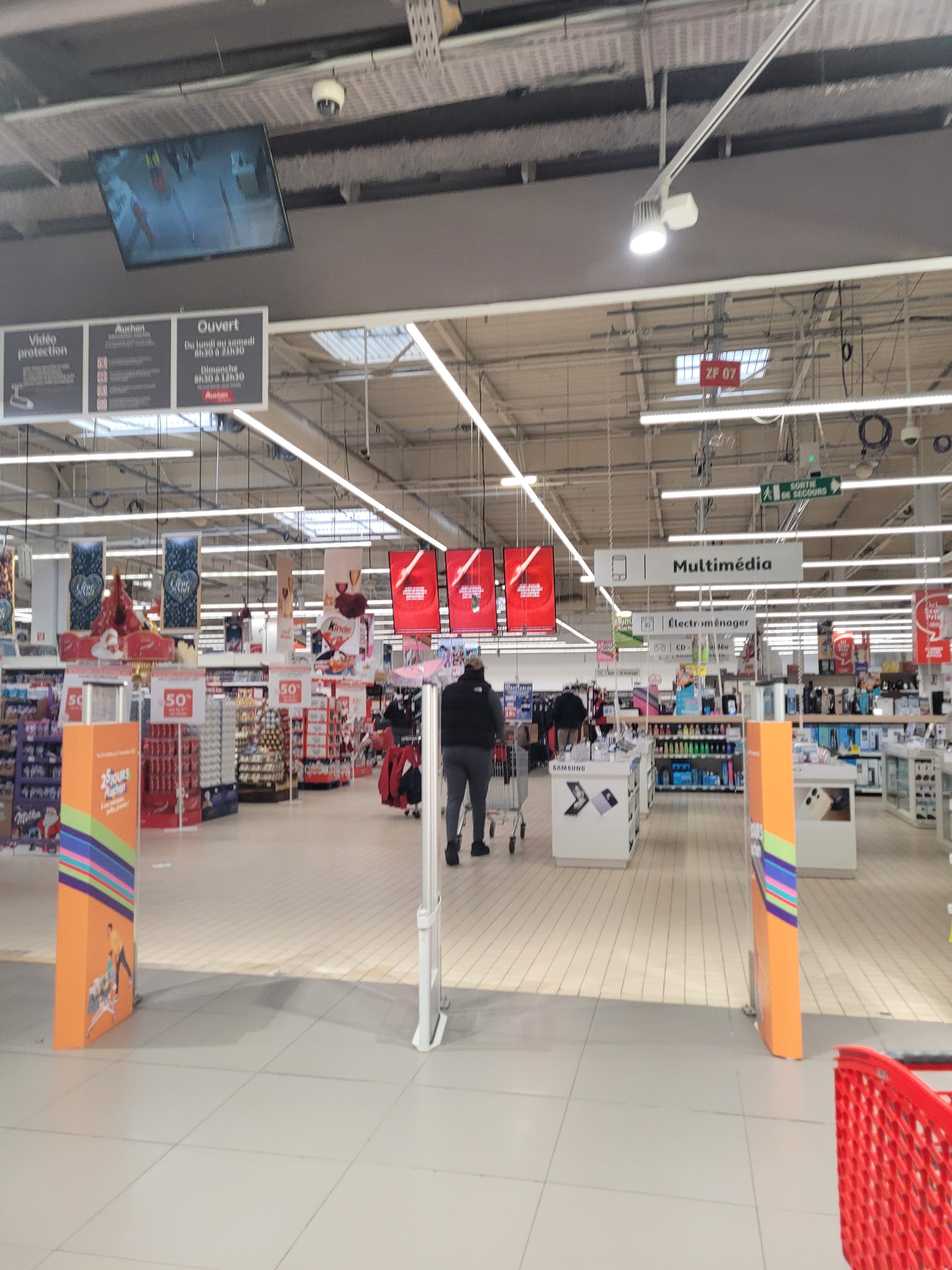 Très grand ... on s'y perdrait ! Du coup il y a beaucoup de choix, beaucoup de rayons et de produits ... et pourtant parfois il nous manque un produit : avant Covid c'était une frustration de ne pas trouver ce que nous cherchions vu la taille de cet Auchan, depuis Covid, il y a souvent des ruptures de stock sur certaines gammes ou certains produits en particulier (mais c'est le cas pour tous les magasins du coin). Bon globalement, c'est quand même le plus grand centre commercial des environs. Sinon au niveau prix c'est assez cher et depuis la guerre en Ukraine c'est encore pire : pour 100 euros je ne rempli qu'un étage au fond de mon caddy, et encore il y a des trous dans mon remplissage ... mais comme j'y trouve des produits que je ne trouve pas ailleurs, ça reste intéressant. Pour 150 euros mon caddy est loin d'être rempli alors qu'il l'est dans d'autres grandes surfaces. Le personnel est très gentil et compétent : c'est toujours un plaisir que de communiquer avec eux. Le rayon pain et patisseries est très bien garnis et vraiment frais : j'aime beaucoup acheter ici car c'est bon. Côté fromagerie, charcuterie et poisson, je trouve que c'est très propre et appétissant, du coup ça ferme tôt car ils sont déjà en train de ranger et nettoyer. Le rayon viande est très grand avec du bio : il y en a vraiment pour tous les gouts. Il y a même un atelier sushis et sashimis frais ... J'y vais une fois par mois en moyenne et ceux qui aiment faire leurs courses y trouveront leur bonheur car les rayons jadinage, bricolage, vaisselle, linge de maison et vêtements sont très attrayants.