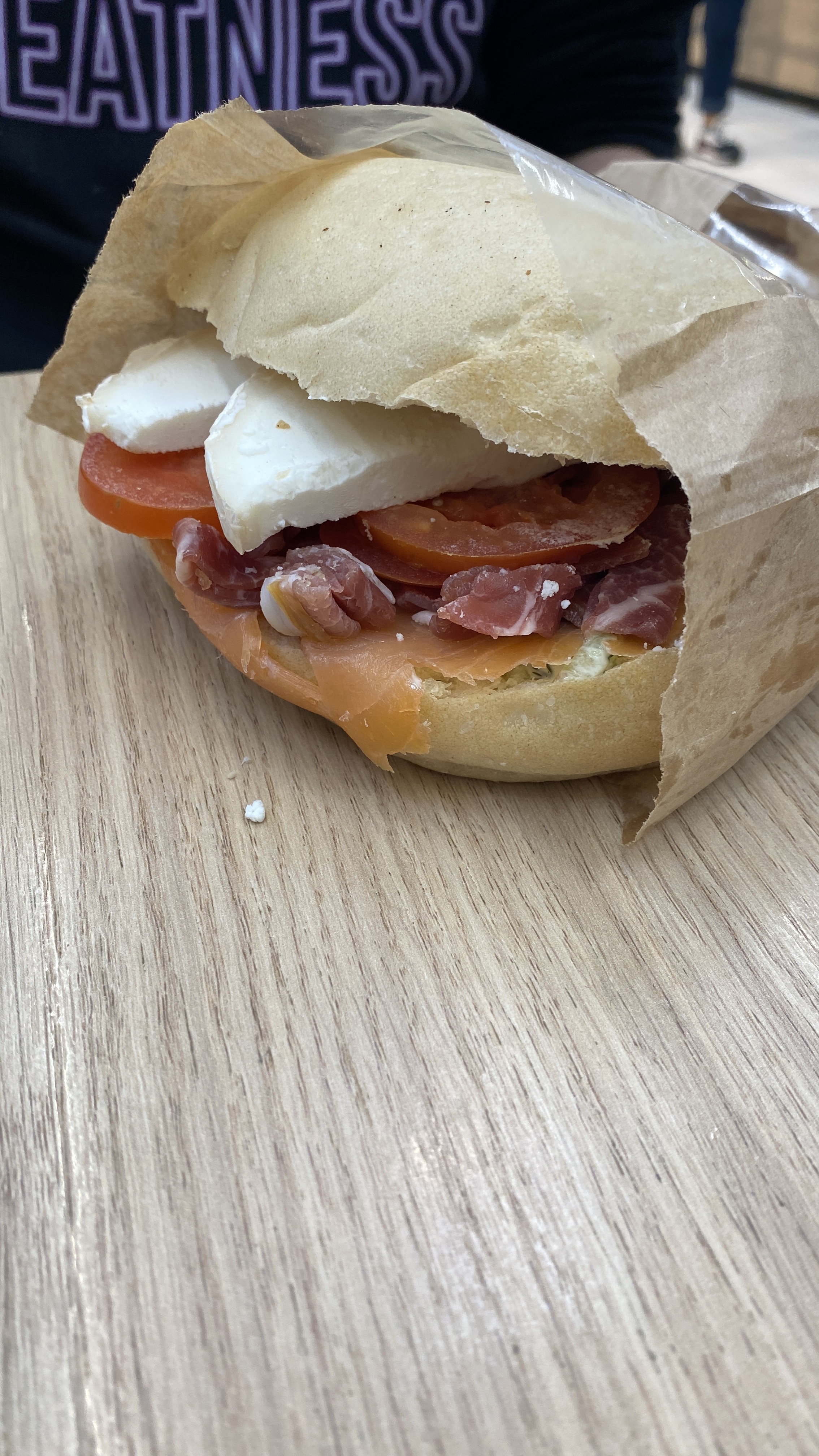 Enceinte de 6 mois, je demande la possibilité de ne pas mettre de saumon fumé mais du poulet à la place dans un bagel ou tout me convenait sauf la protéine. on me dit que c'est un supplément dans ce cas . ( Je trouve ça dommage puisque ils enlèvent l'élément principal pour mettre un au élément moins coûteux en temps normal.) Pour au final avoir un bagel au pain raci, et du poulet plus que douteux, ( odeur et aspect pas frais ). Mes parents me l'ont confirmé. Et ma mère qui elle aussi avait un bagel avait un pain raci. Je n'ai rien mangé, juste les frites qui sont bien . J'ai tout de même signalé en partant ,mais ils n'ont pas cherché a en savoir plus. Aucun geste.