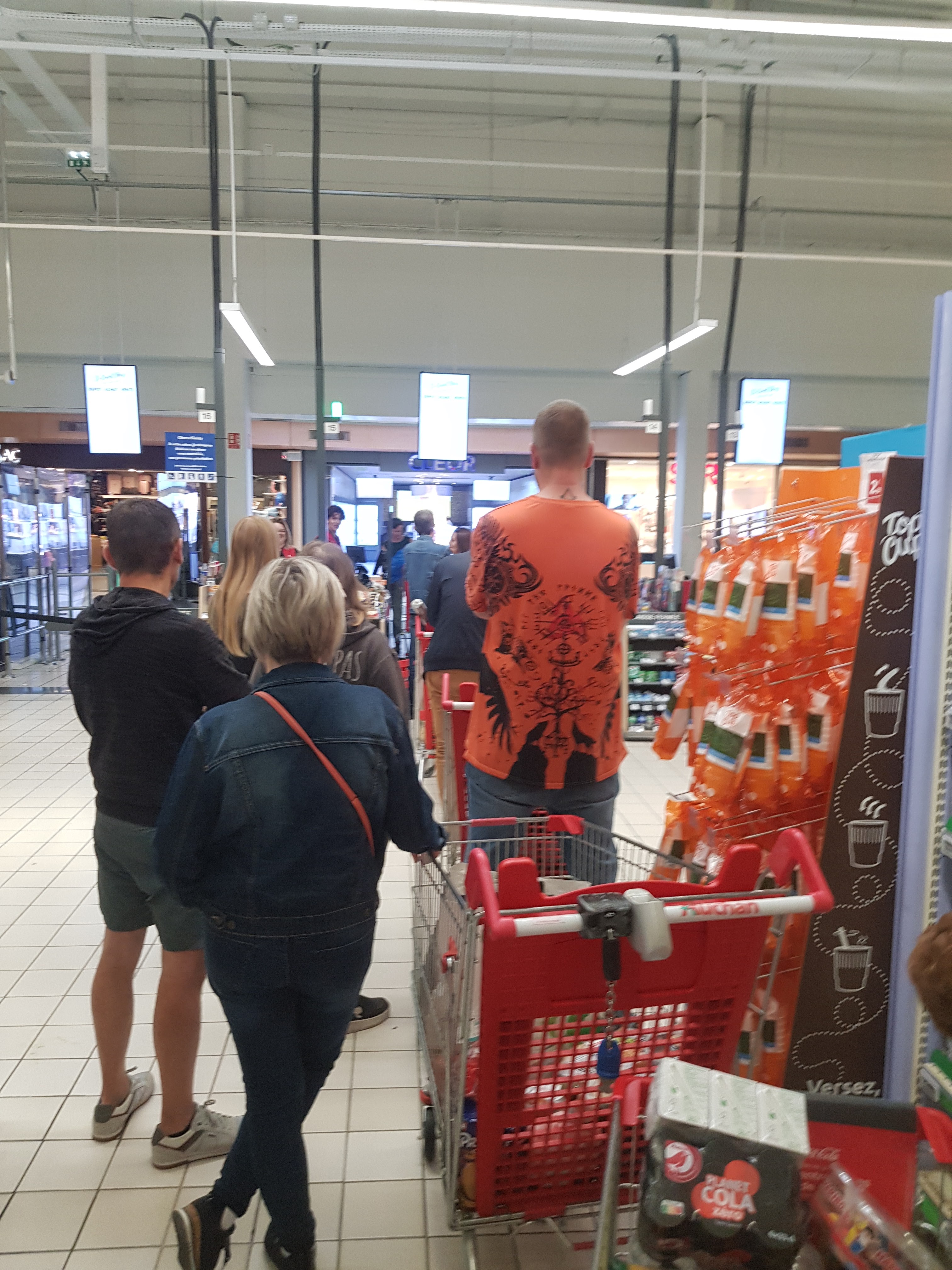 Y a trop peu de caisses et beaucoup trop de monde. Parfois des produits en rayons qui ont des dates trop proches de la fin, voire le jour même