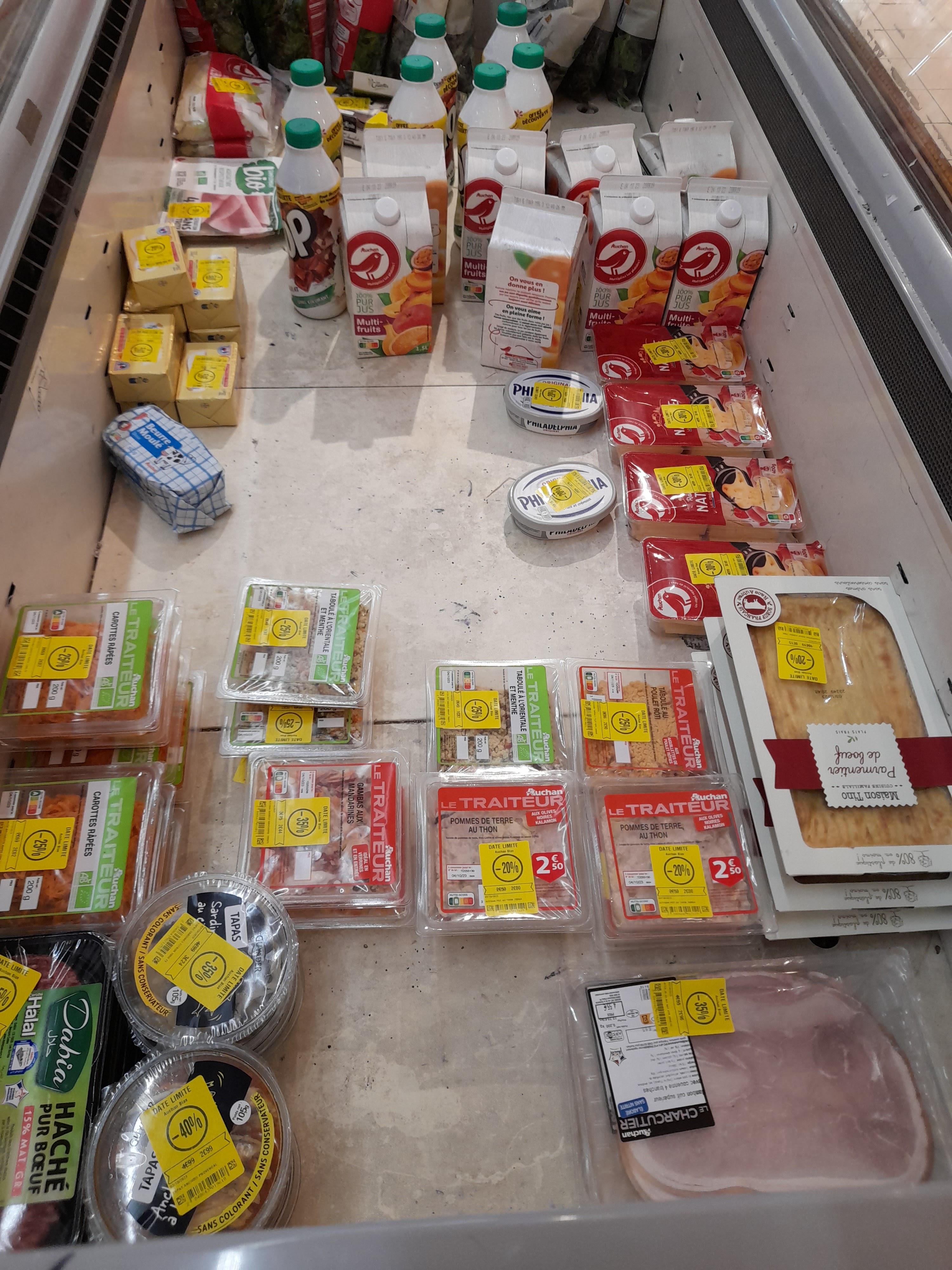 Je vais à Auchan une fois par mois j'achète des plats que la date de limite va bientôt être dépassé je m'en sors bien après il faut faire attention Auchan est plus cher que leclerc