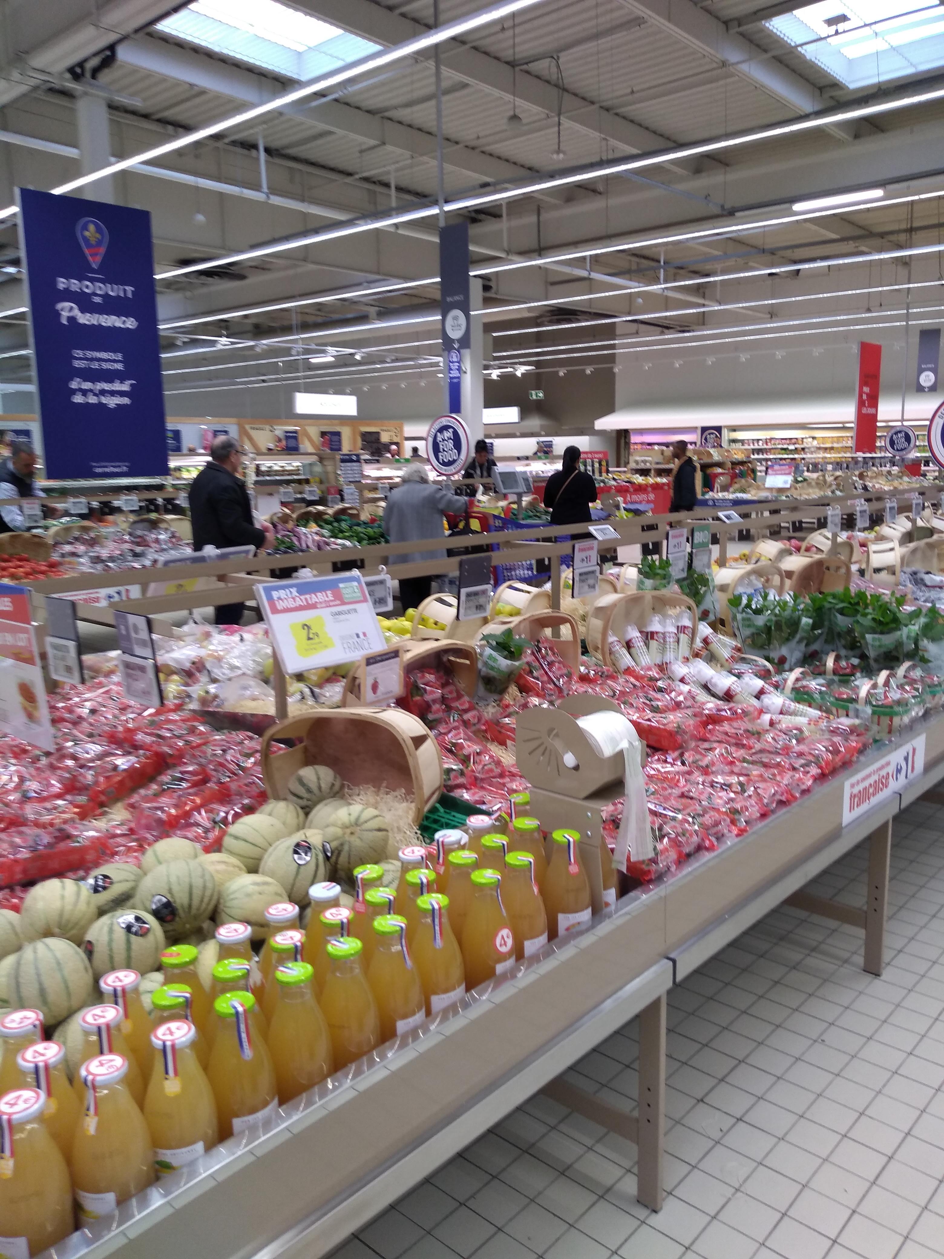 Le carrefour ou nous allons maintenant faire nos courses les produits y sont de bonne qu alité le magasin plutot bien agencé Ce que nous apprécions c est aussi le fait qu il n y ai pas le rush comme dans beaucoup d autres centre commerciaux