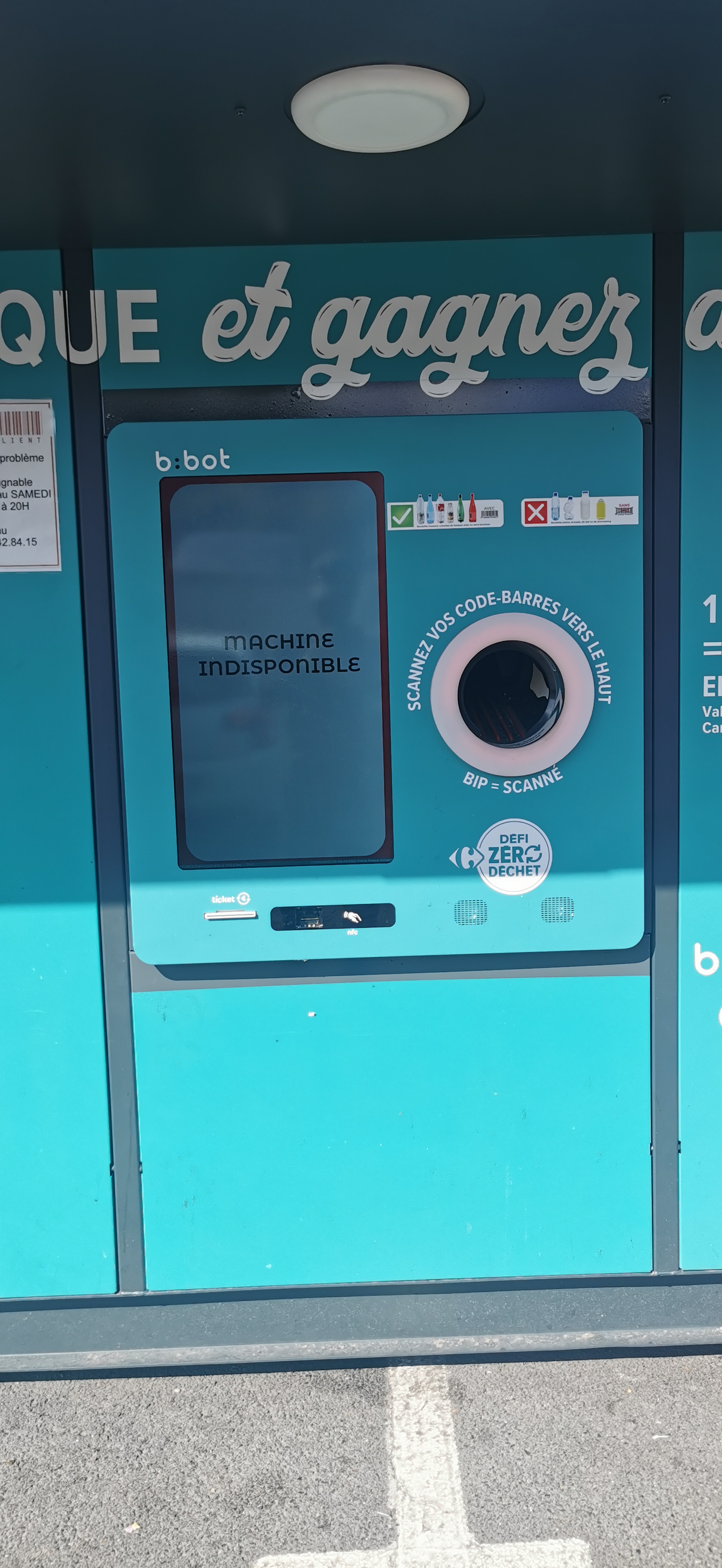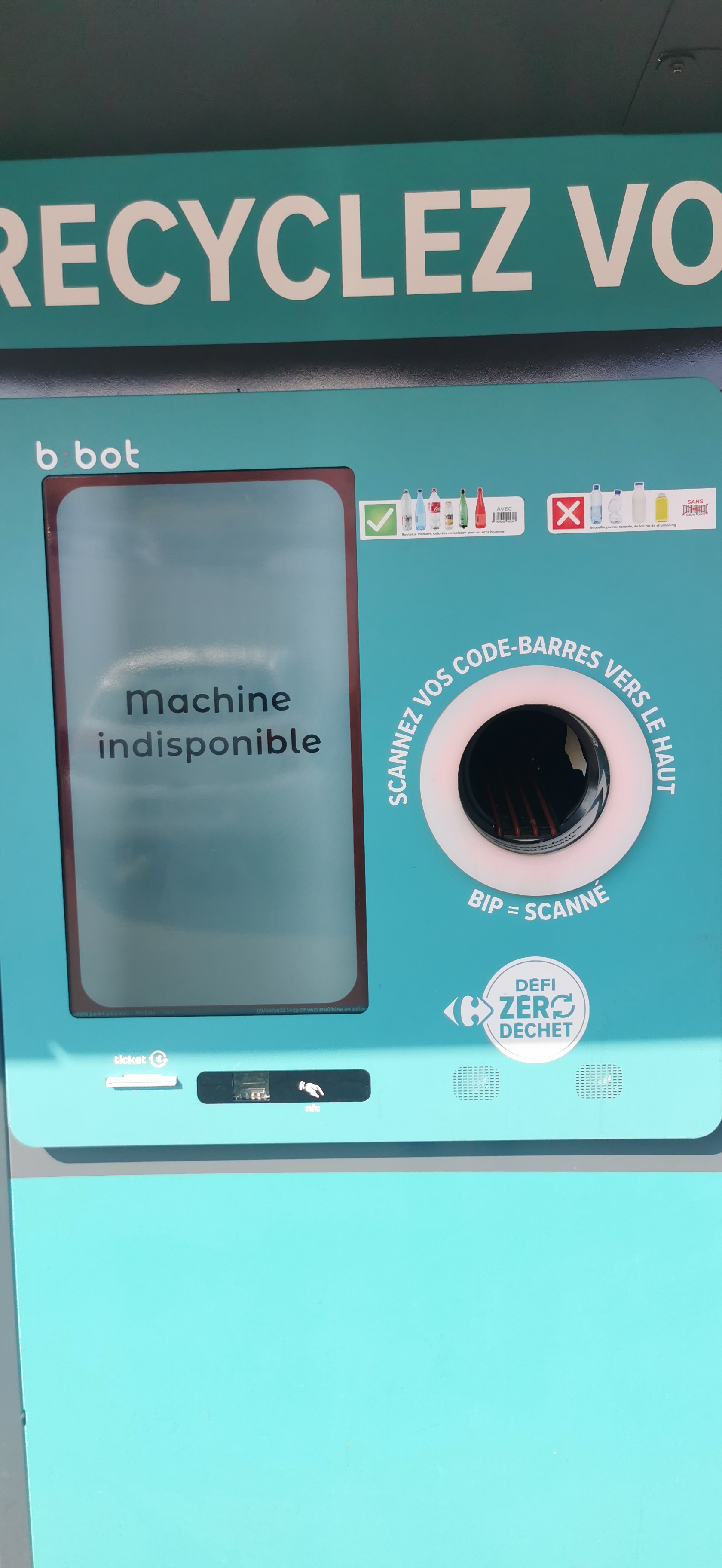 Arnaque avec leur Défi 0 déchets juste un masque pour faire genre. Je suis venu à plusieurs reprises sur plusieurs semaines pour vérifier si c'est vraiment pour une bonne cause mais à chaque fois la machine est indisponible problème technique