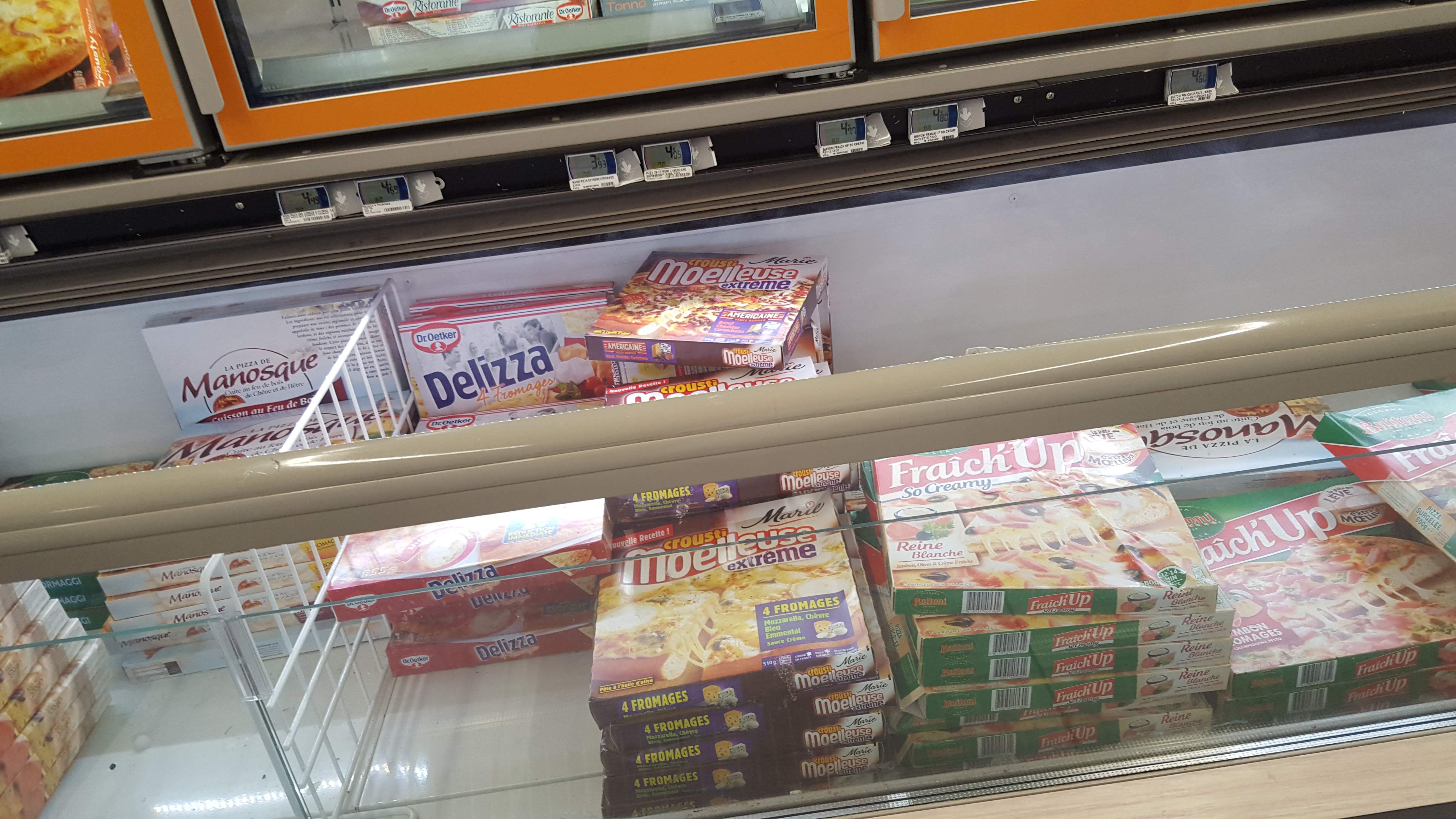 A la recherche d'un plat pour la pause déjeuner... Les sushis et les pizzas du rayon traiteur plus chers que dans les restaurants du quartier ça c'est vraiment fort... Quand la bouffe industrielle devient plus cher qu'au restaurant de quartier il y a un sérieux problème... Ça devient du racket à ce niveau Carrefour...