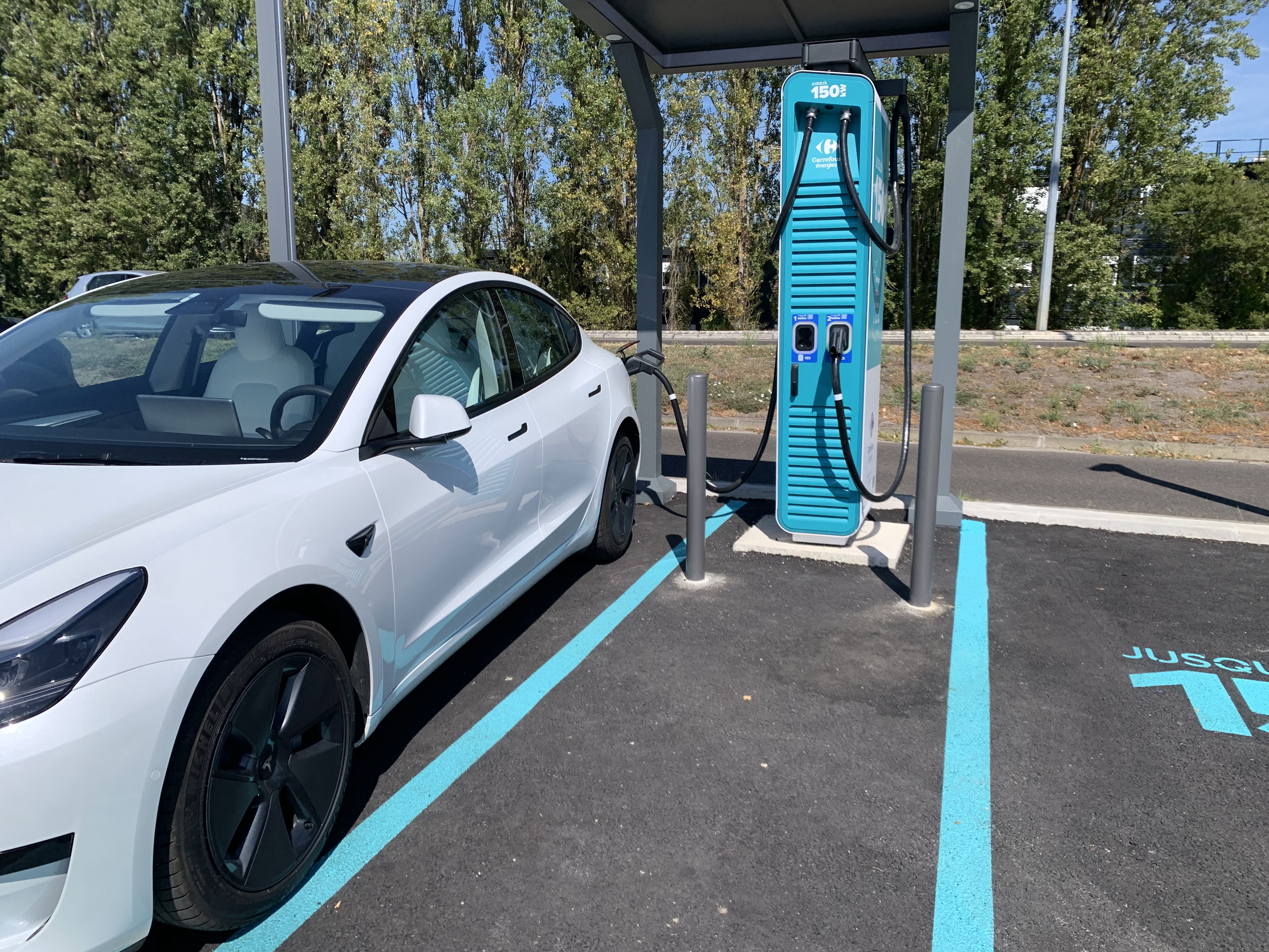 Seule borne de recharge rapide dans tout le secteur ! Merci Carrefour et Allego !