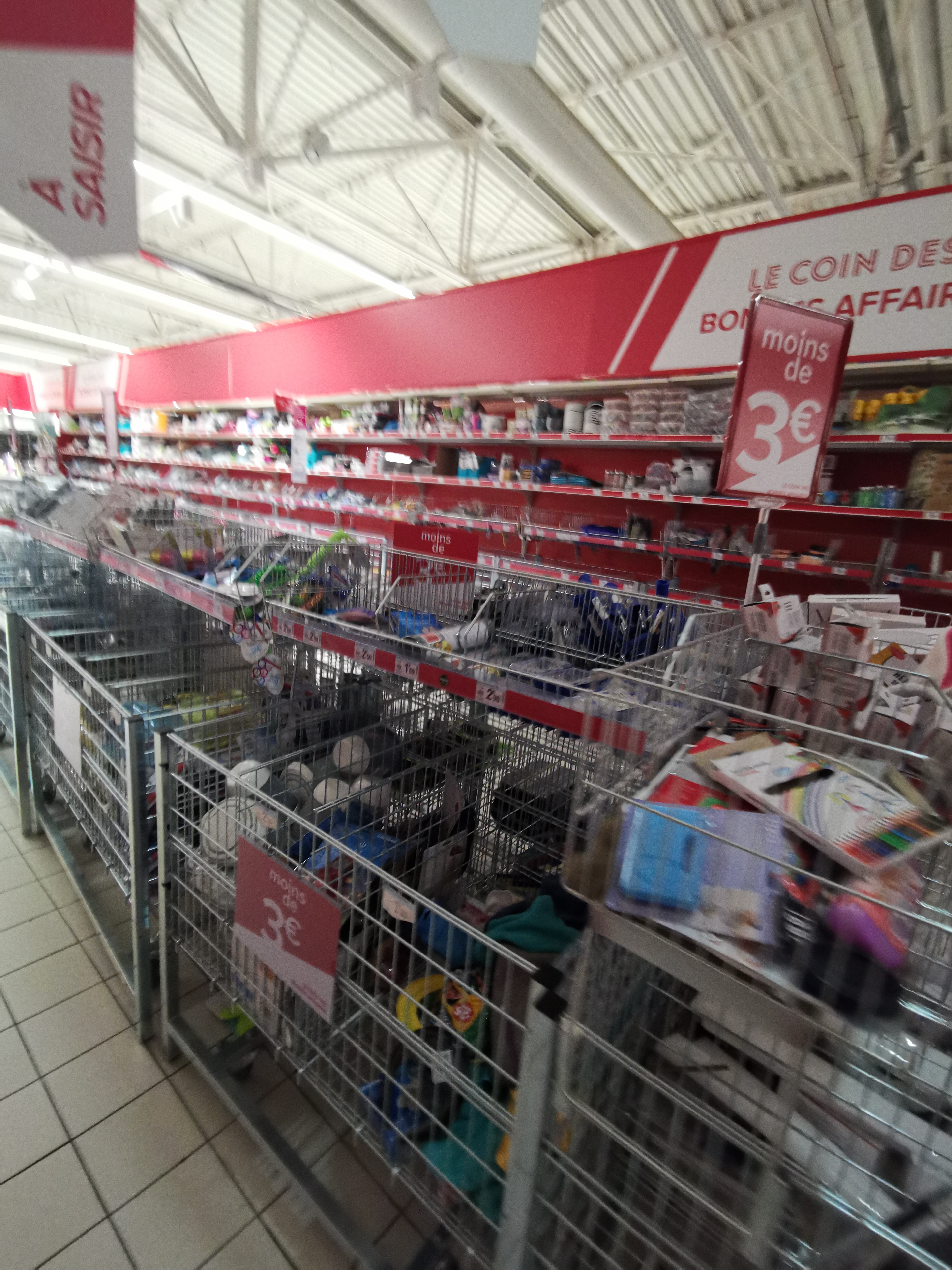 Venu pour une cafetière en promo. Il m'a fallu passer 2 fois et un remboursement pour voir le code barre microscopique qui différencie les cafetières toutes mélangées. 30 minutes et 3 passage à l'accueil....presque arnaque faut une loupe et fouiller les stocks