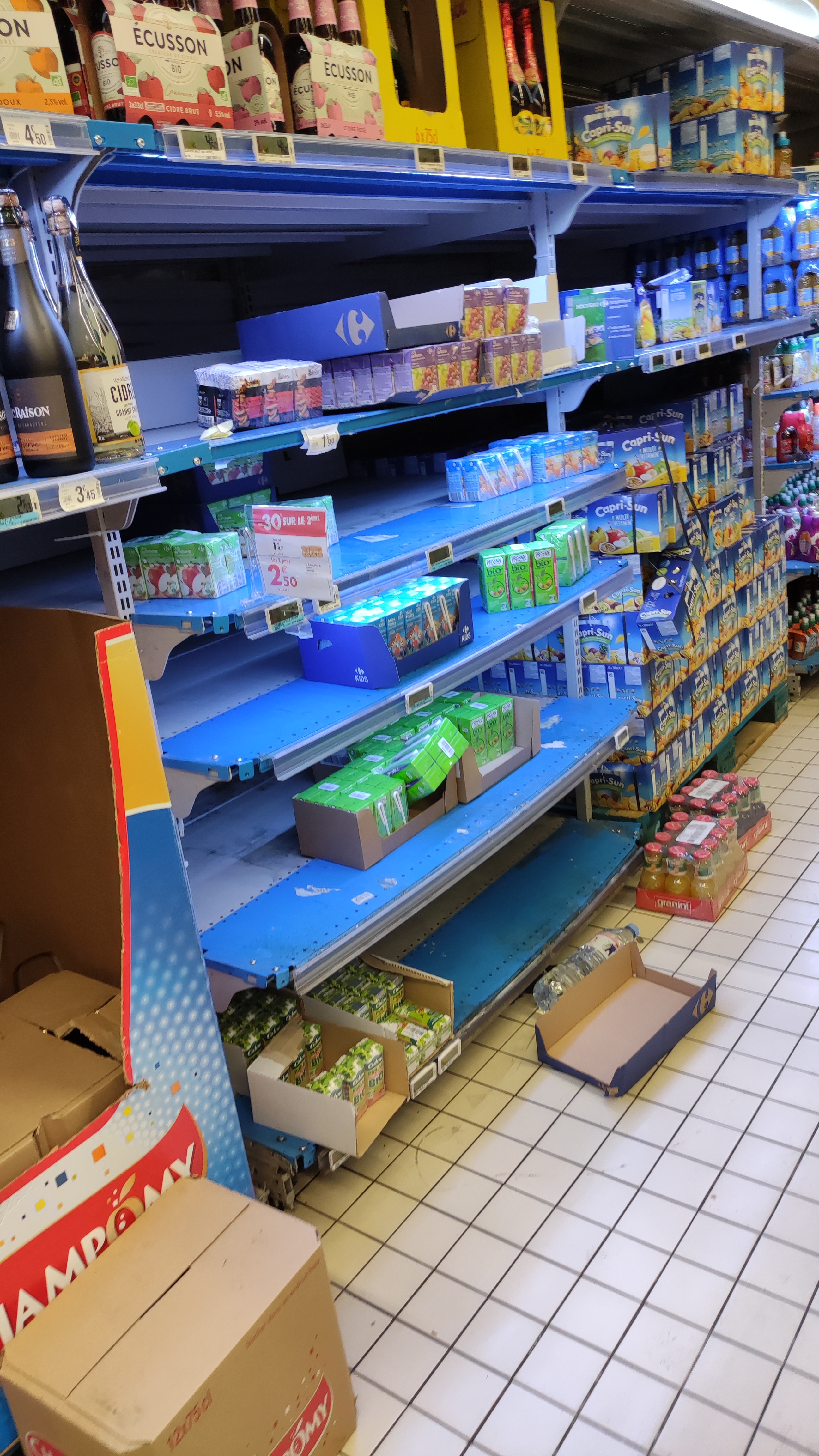Pire carrefour du Rhône, magasin vide mal rangé, mal approvisionner, la caissière qui me dit qu’elle est « éclatée » parce qu’elle a traîné jusqu’à minuit dehors alors que je ne la connais ni d’Adam ni d’Ève