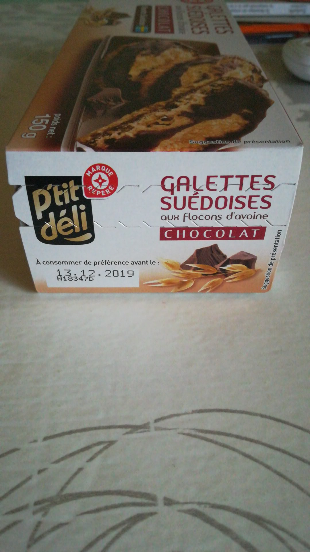 Paquet de gâteau galettes suédoises au chocolat de la marque repère acheté ce jour (23/12). Arrivée à la maison nous nous rendons compte qu'il est périmé depuis le 13/12, soit déjà 10 jours...
