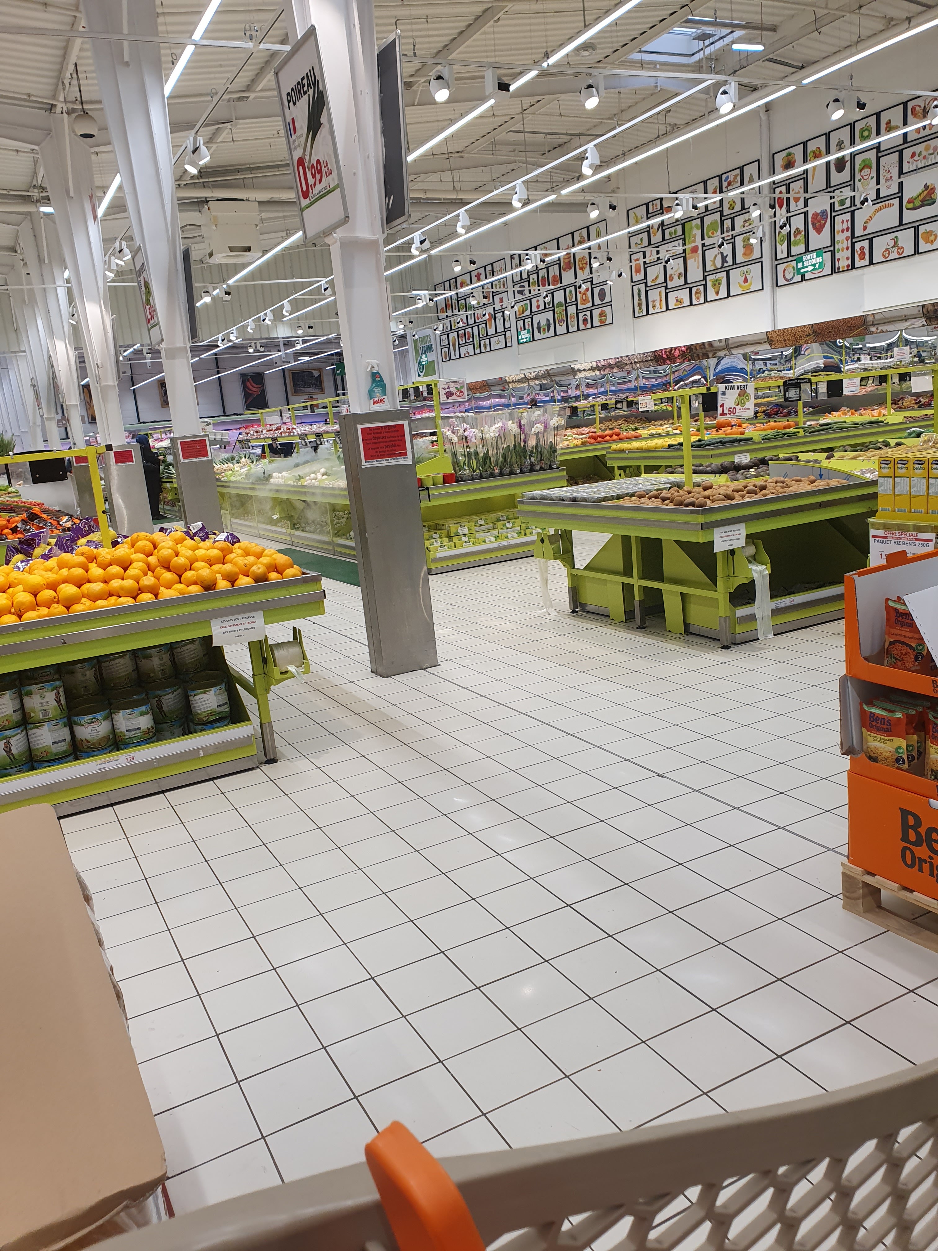 Très beau et grand magasin Un énorme choix de fruits et légumes Une très grande variété d'aliments et de boissons Ainsi que de produits ménagés et autre. Tout ça avec un rapport qualité prix très intéressant. Je recommande vivement